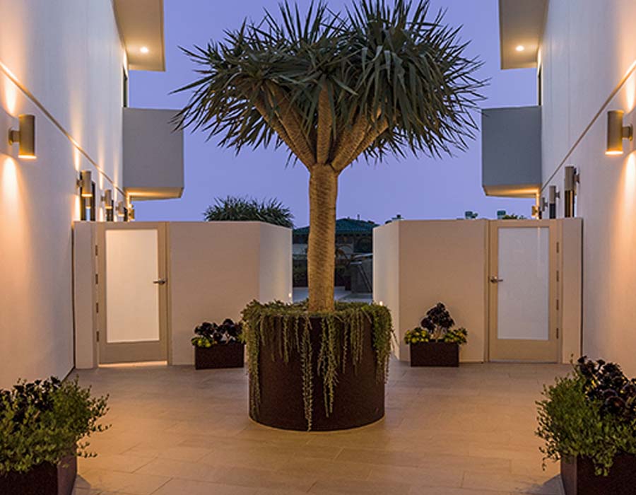 Spacious 3,200 square foot interiors highlight the property’s beautiful setting with 12’ ceilings and oversized windows. Terraces off the Great Room and rooftop are ideal for elegant outdoor parties, while a chef-caliber kitchen enables residents to fully enjoy California’s renowned farm-fresh produce and fine wine. Three en-suite bedrooms, including an oversized Master Suite with a spa-inspired bathroom and terrace, ensure that residents and their guests enjoy perfect privacy and comfort. A private elevator connects the primary garage with the two enclosed living floors.